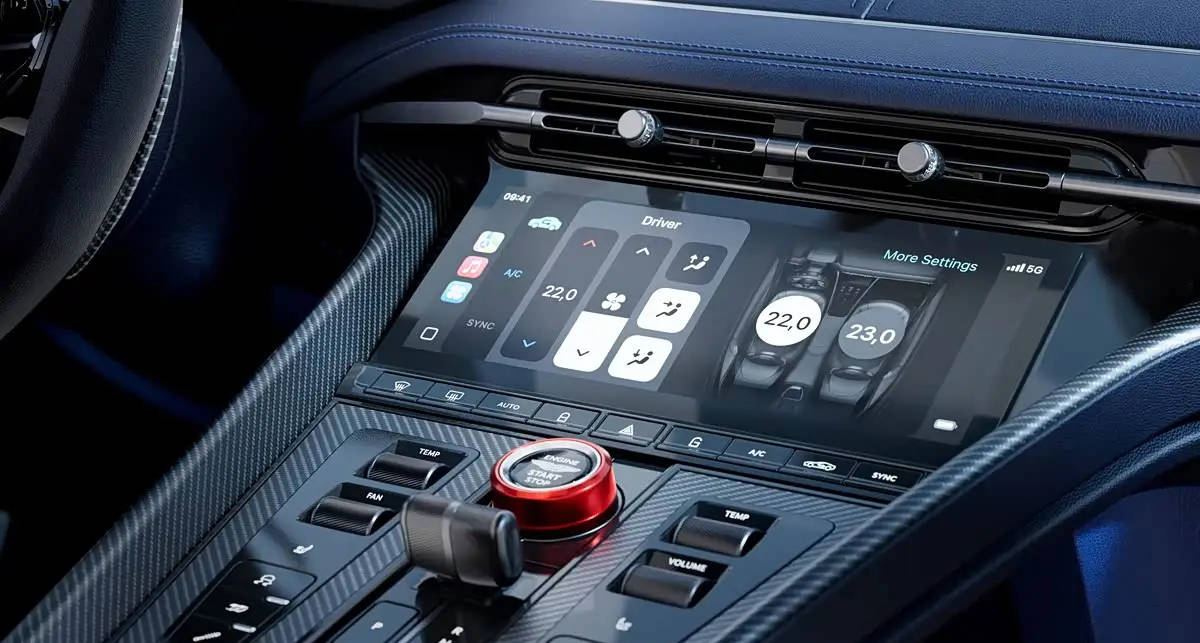 新车的内饰基本与普通版DB12保持一致,仅对部分细节进行了调整。新车应用了三幅式方向盘,白蓝黑三拼色内饰与外观呼应,座椅上有蓝色的“S”徽标刺绣。空调出风口下方的内嵌式中控屏幕可以调节空调,再往下是换挡拨杆及大量的物理按键,包含驾驶模式选择、座椅加热等功能。新车配备宝华韦健的音响系统,保障音乐质感。