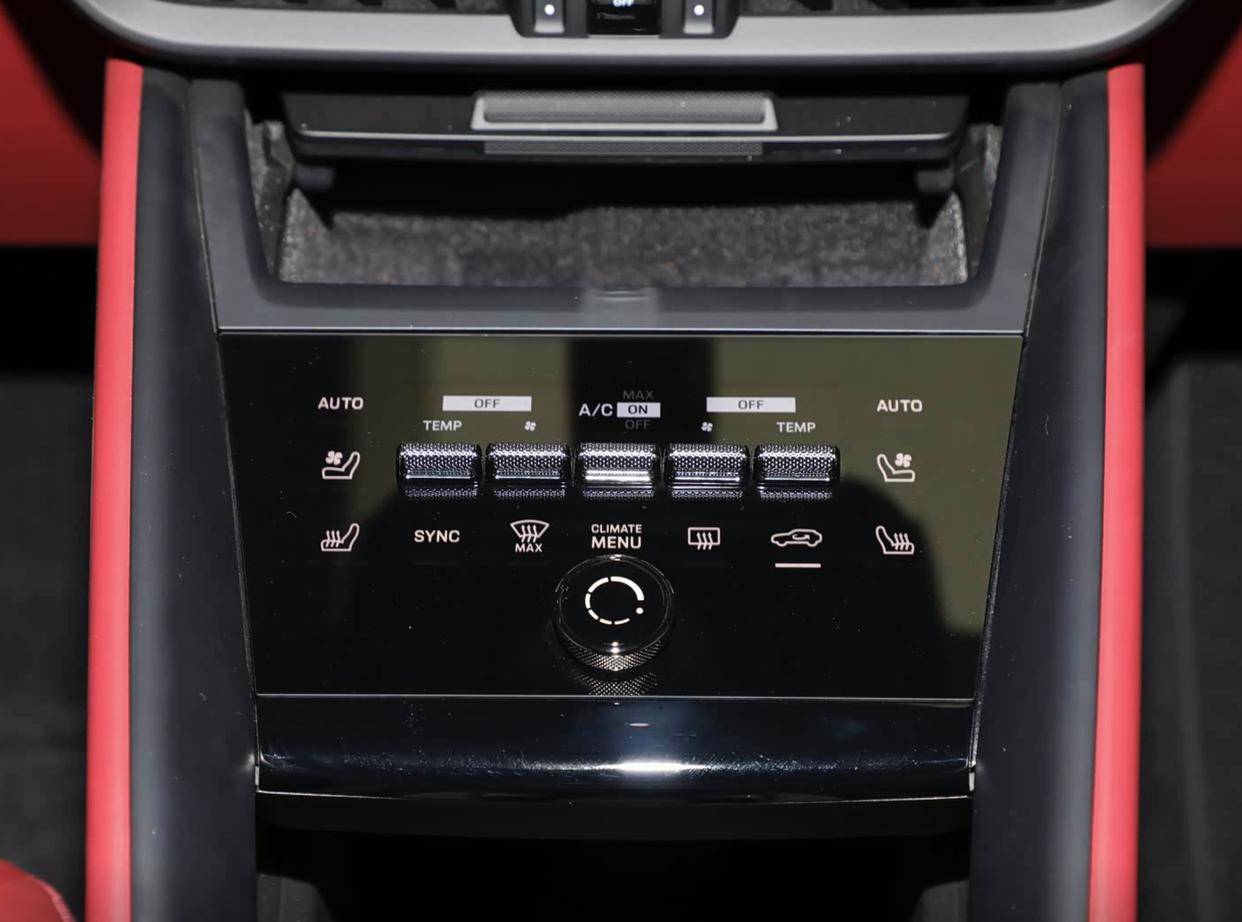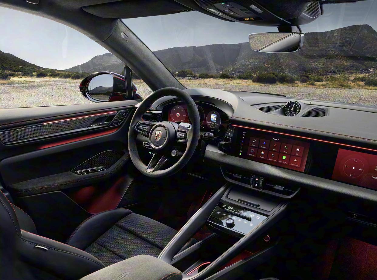 保时捷纯电Macan GTS的整体布局依旧延续了燃油版Macan GTS的样式设计,环抱式的座舱加入了软性皮革材质和Alcantara面料的铺陈,再加上红色的精致缝线和GTS刺绣,配备了前排桶装赛车座椅,后排沙发座椅,加宽加厚的颈、肩、腰、腿部的侧翼,麂皮绒和真皮材质的交替混搭,提供了更好的支撑性和包裹性。中控台配备了保时捷家族式的三辐式多功能方向盘,大尺寸换挡拨片和多功能挡杆的加入带来了蜷缩未有的操控体验。操控岛区域采用了U字形的结构两侧采用了镂空式设计,取消了传统的换挡手柄,配备了一块巨大的全液晶触摸面板。科技感方面,该车配备了14.8英寸的半液晶仪表、11英寸的触控液晶屏和11英寸的副驾驶多媒体液晶屏,支持GPS导航、道路救援呼叫、手机互联、语音识别系统。此外,它还配备了Bose音响、无线充电。