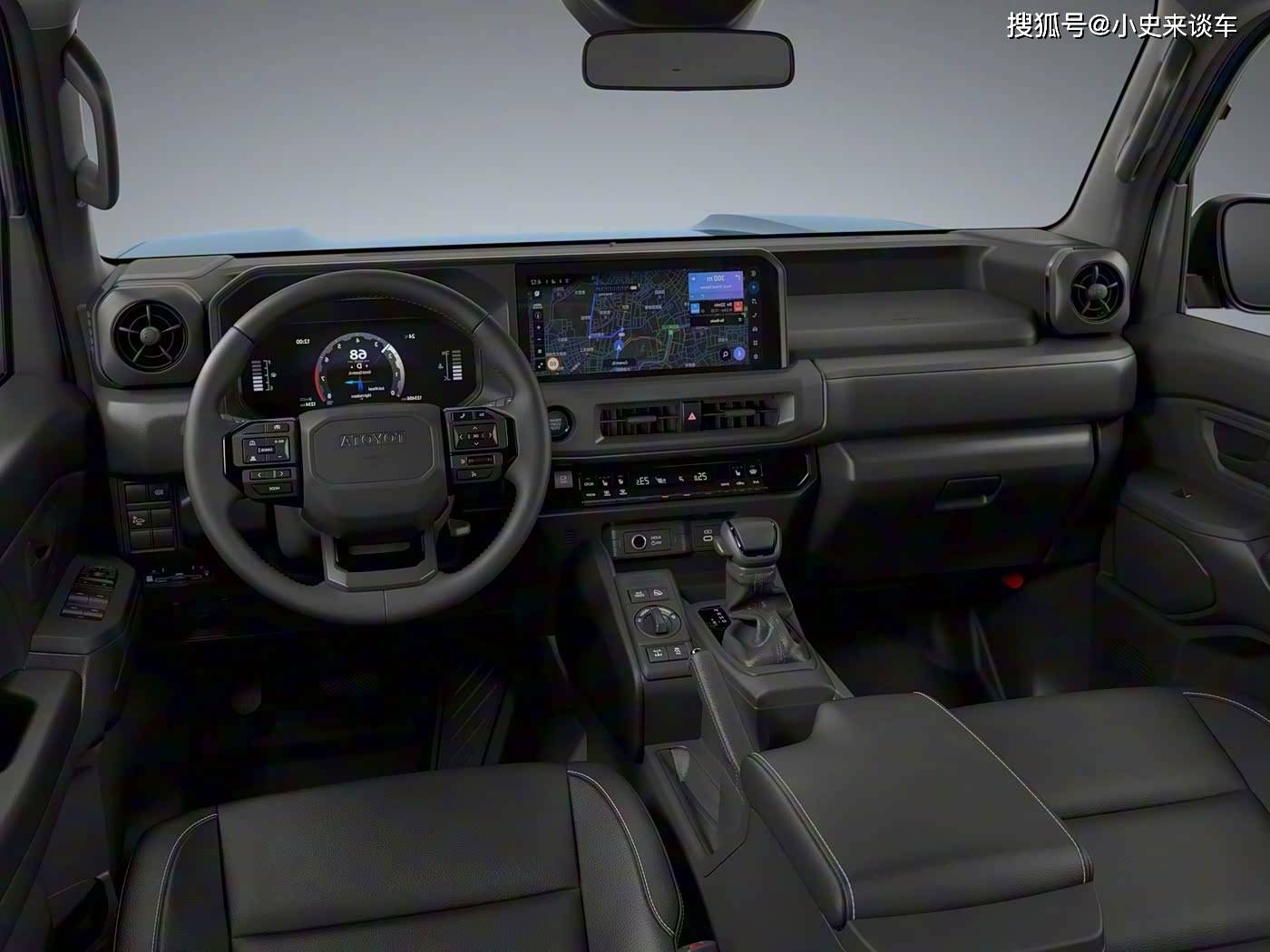 进入车内,内饰延续普拉多的横向分层布局,以深色硬塑料与织物面料为主,虽无豪华质感,却具备极强的耐脏性与抗造性,契合越野场景需求。中控台按键布局清晰直观,物理旋钮与实体按键的组合,确保戴手套时也能精准操作,避免电子触控在恶劣环境下的失灵风险。