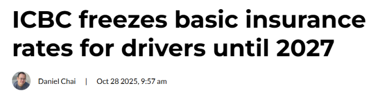 据Daily Hive报道,BC政府今天宣布,将冻结基本汽车保险费至2027年。