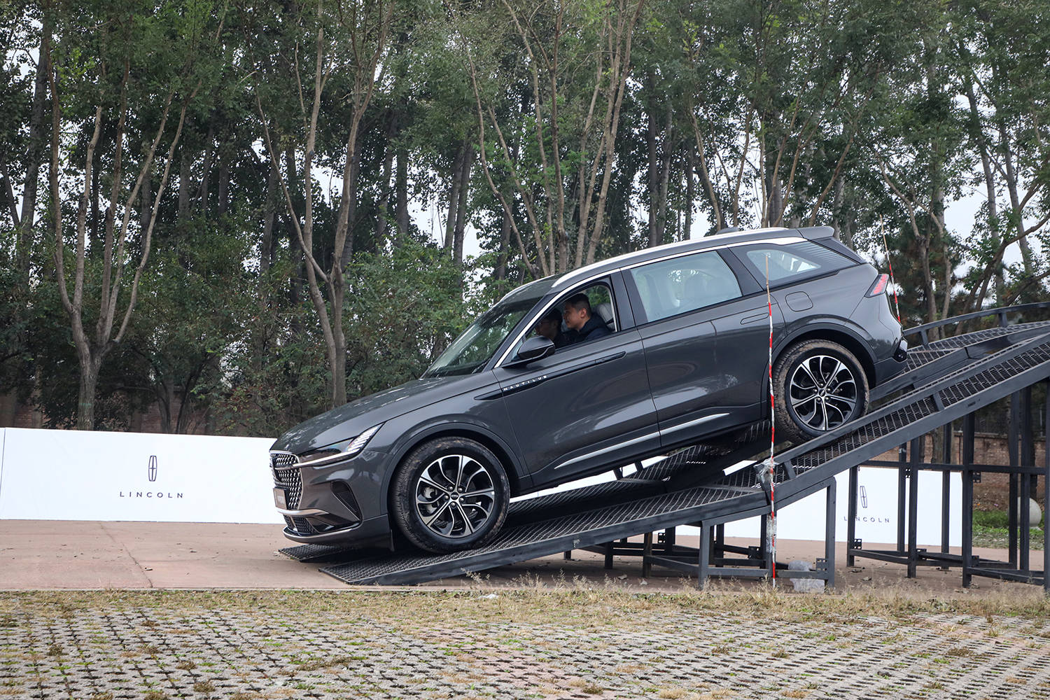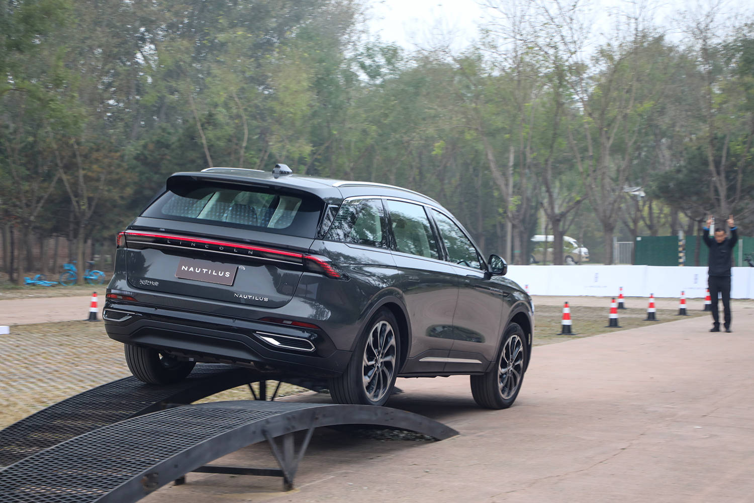 航海家的第一个项目就是交叉轴测试,这个项目考验车辆四驱系统扭矩分配与车身刚性,此外对车辆的底盘高度、接近角、离去角等物理通过也有一定要求。当车辆驶入交叉轴路段,对角线车轮出现悬空打滑时,林肯航海家的四驱系统迅速识别打滑车轮并进行制动,同时将动力传递至有附着力的车轮,扭矩分配响应迅速且高效。