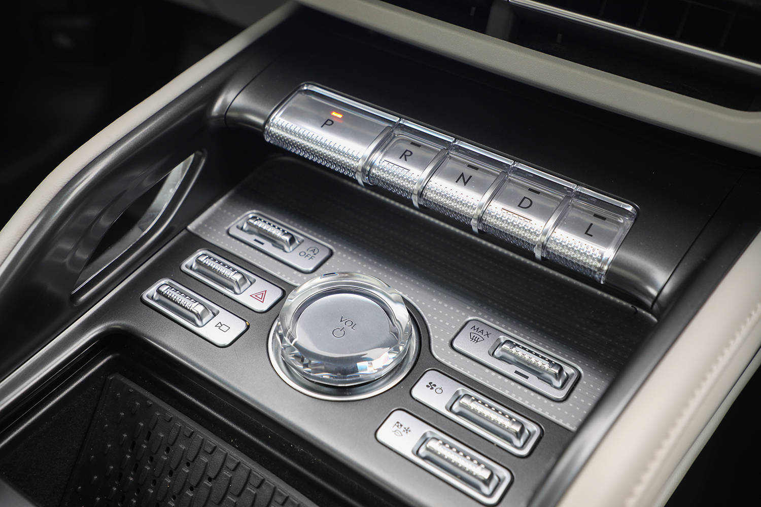 内饰是林肯航海家的“豪华主战场”,整体采用横向延展的中控台布局,大面积软性皮质包裹以及镀铬饰条点缀,再搭配缝线工艺的细节勾勒,高级感扑面而来。