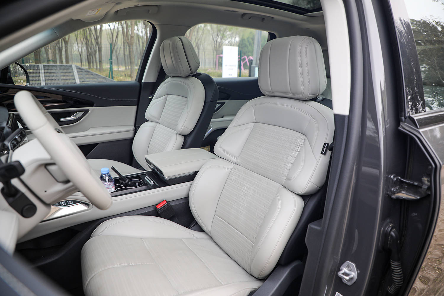 前后排座椅都很宽厚,内部填充物柔软且支撑性十足,前排座椅支持24向电动调节,两侧腿托可独立调节角度,无论是身高190cm的大个子还是娇小身材的驾驶者,都能快速找到最舒适的坐姿。还拥有加热、通风、记忆等功能。