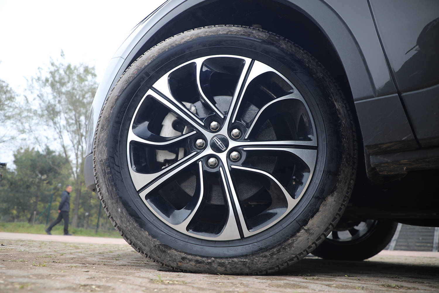 多辐轮圈的旋风样式十分动感,尺寸也很饱满。轮胎使用倍耐力Scorpion MS四季轮胎,,尺寸为255/55 R20.它具有出色的抓地力和不错的舒适性,并且有着轻度的越野能力,土路、小坑洼等路面,能够稳定通过,满足驾驶者偶尔去郊外撒野的需求。