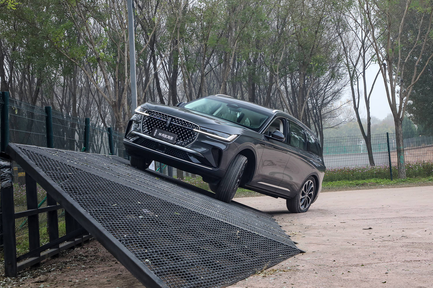 侧侧陡坡体验主要考验车辆悬架支撑力度、重心位置设计,以及轮胎抓地力和车身刚性。同时上下坡时会有一个轮子悬空,此时也会考验单轮悬空的脱困能力。