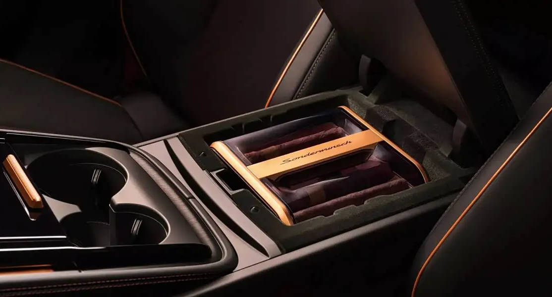 另外在配置上,保时捷还根据车主要求在储物格内安装了雪茄保湿盒,雪松木为内衬,还配有湿度计,以及带照明的香槟柜。