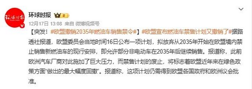 美国此前已经放宽了尾气排放规定,给了燃油车和混动车型更多生存空间。而当地时间12月16日,欧盟委员会更是公布新议案,直接取消了2035年禁止销售燃油车的方针。