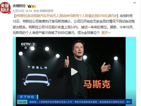 当地时间12月15日,马斯克确认,特斯拉已开始在无安全员情况下测试自动驾驶出租车。