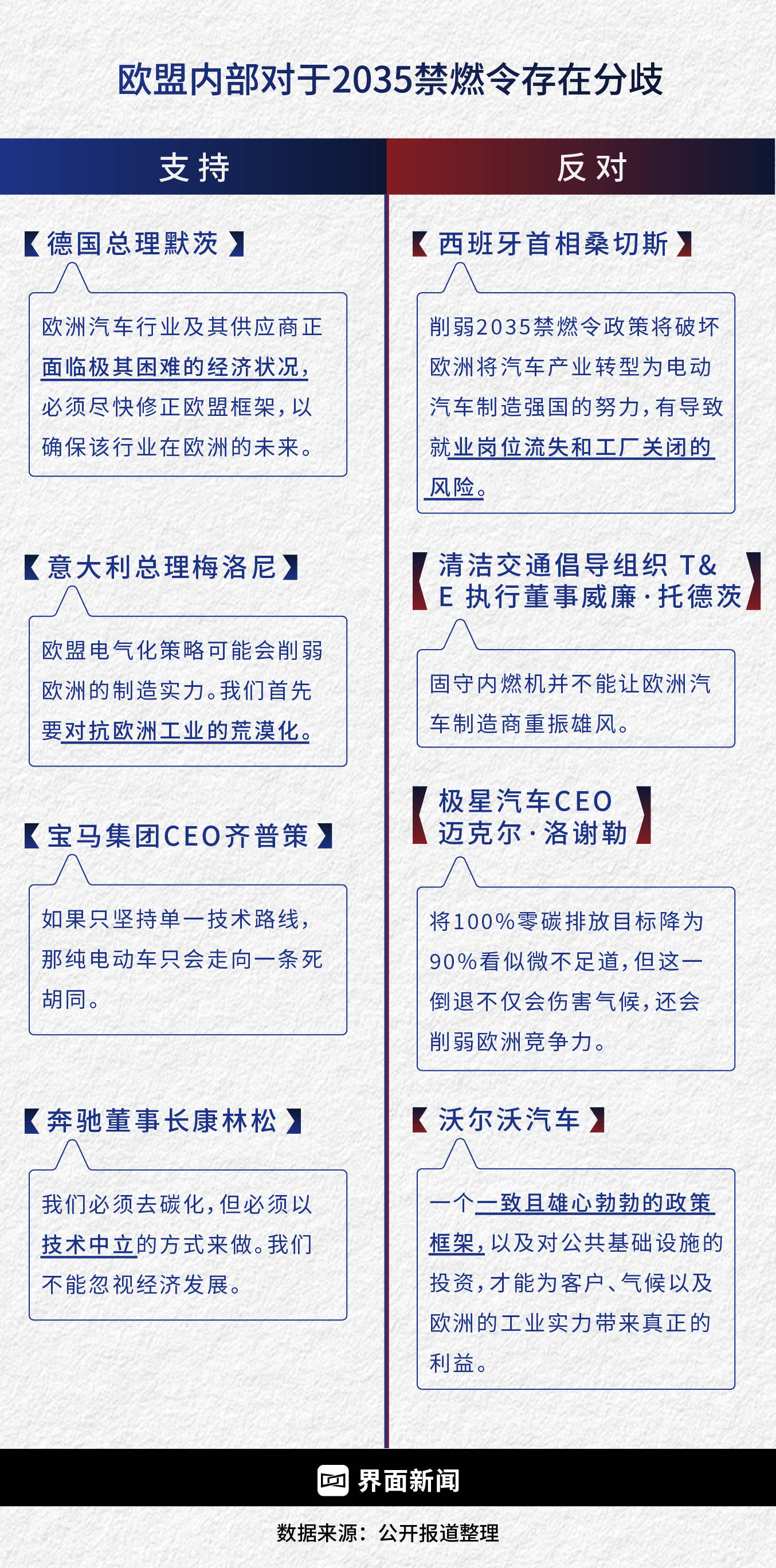 行业诉求迅速上升为成员国之间政策博弈。本月,由德国、意大利牵头,联合捷克、匈牙利、保加利亚、波兰和罗马尼亚等七个成员国致信欧盟委员会主席冯德莱恩,要求对禁燃令进行“务实修正”。