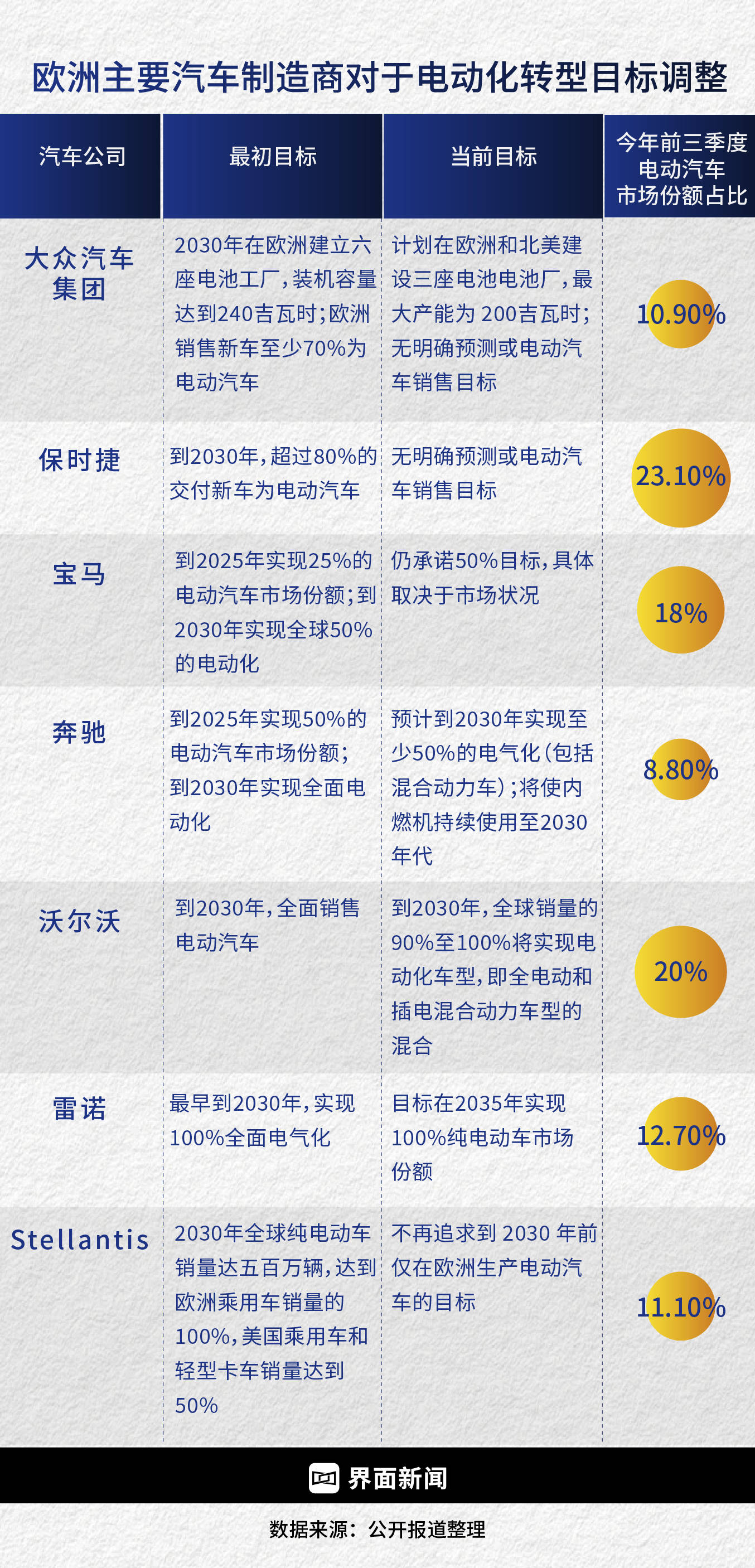 而今天的调整,折射出欧洲汽车产业当下面临的困境。能源成本高企、充电基础设施不足、电动车市场增长迟缓以及来自中国新能源汽车产业的激烈竞争,让欧洲对自身转型节奏产生了更深的焦虑。
