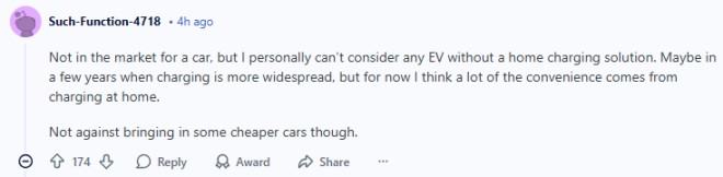 我自己就有一辆电动车,也很喜欢,但从亲身体验来看,如果没有家用充电,使用感受真的会差很多。