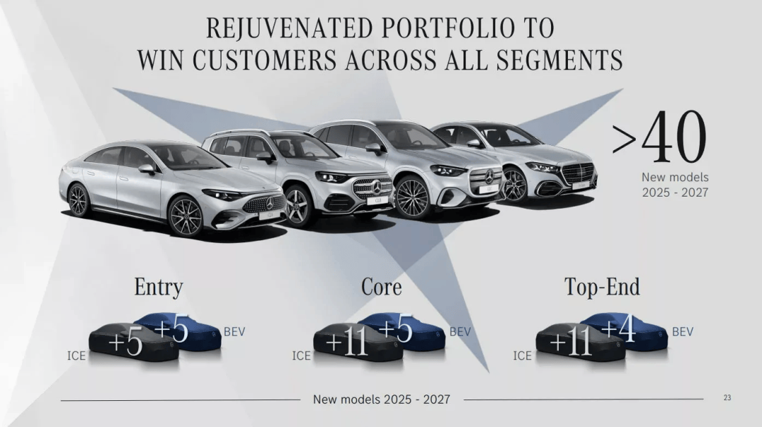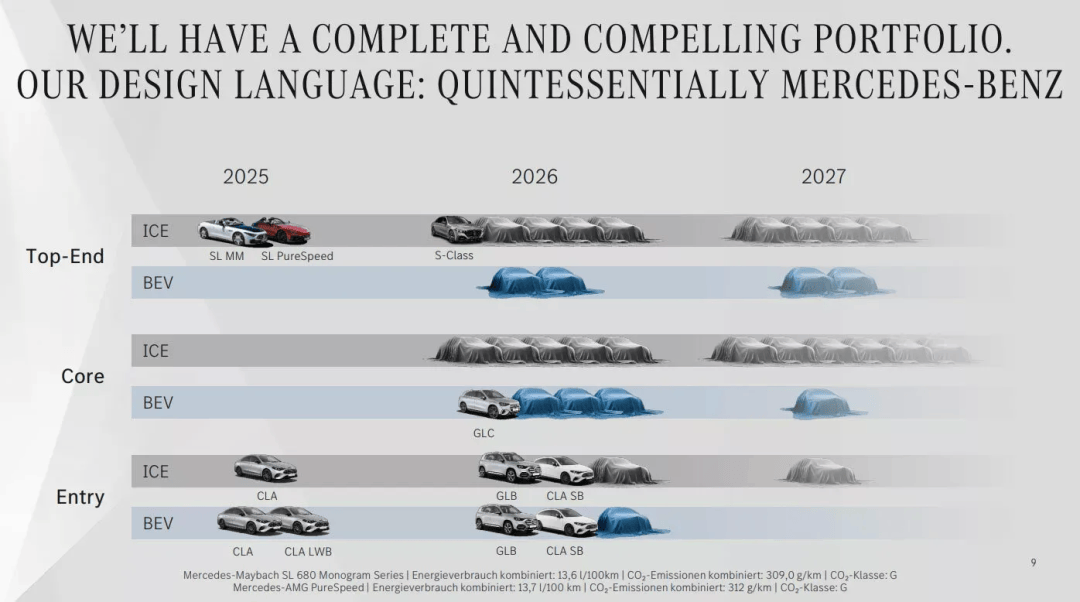 2027年,奔驰将推出14款车型,其中3款为纯电动车型。绝大多数新车将归属品牌核心系列,部分高端车型则可能是改款SL。