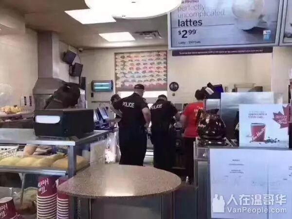 还有这个,在Drive through查看手机Tim Hortons drive through窗口,两个威武的警察叔叔紧盯着来点餐的司机,小伙伴们千万要忍住,一旦手贱,荷包就遭殃了!