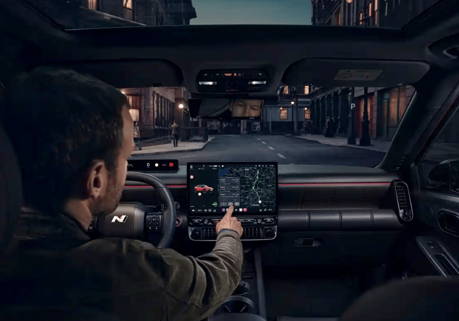 内饰遵循“家具空间”设计理念,中控台简洁硬朗,配备12.9英寸或14.6英寸独立悬浮中控屏,搭配细长条液晶仪表,既避免联屏沉闷,又减少视线干扰。新车首次搭载基于安卓 Automotive OS开发的Pleos Connect智能系统,支持分屏显示与自然语音交互,同时保留常用物理按键,兼顾科技感与实用性。纯平地板、大面积玻璃天幕及环保内饰材质,进一步提升座舱舒适感与高级感。